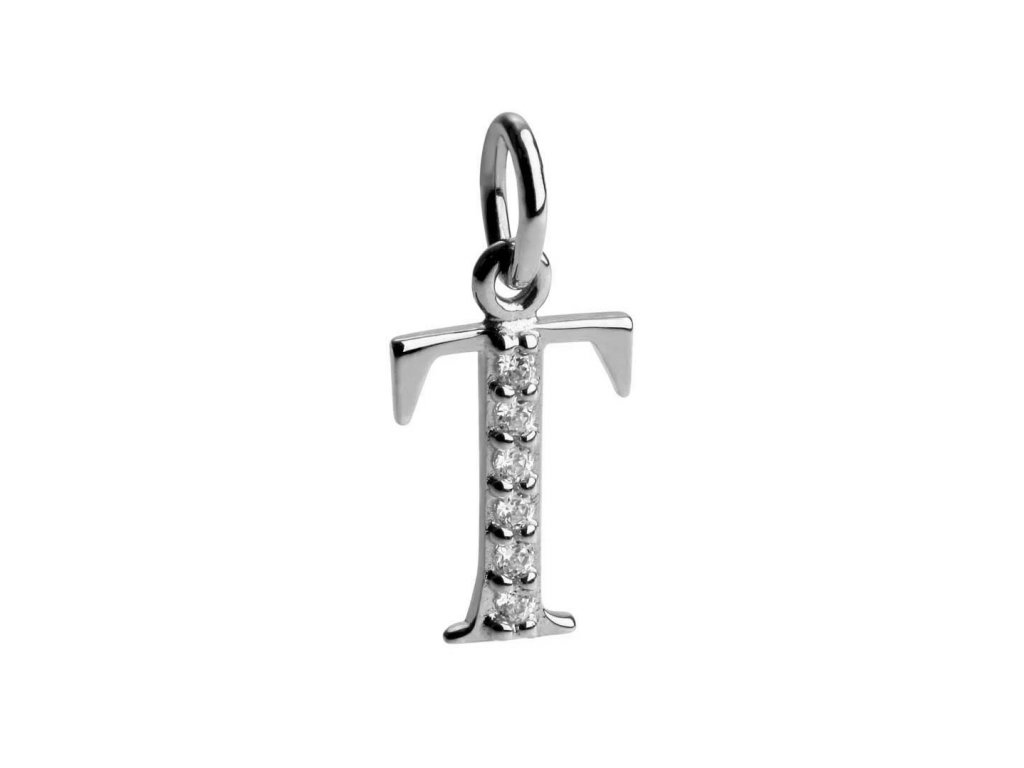 Silber Anhänger T mit Zirkonia